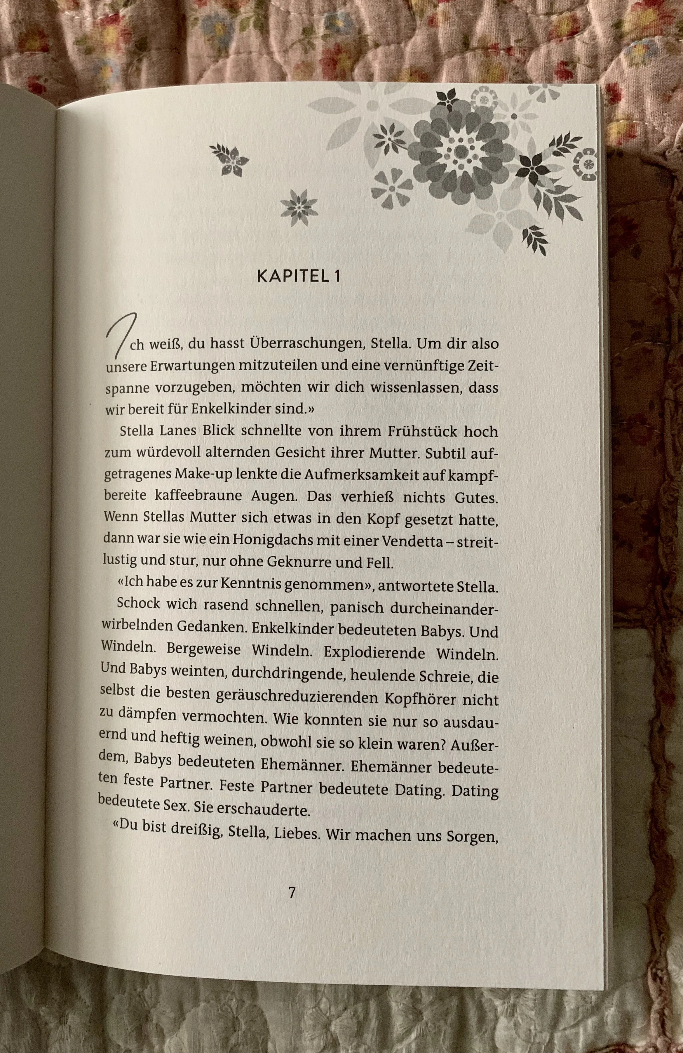 Ich liebe Stellas Art zu denken und ihre Art sich auszudrücken. Zum Beispiel, gefällt ihr Michaels Geruch und sie kann sich das nicht erklären und sagt dann „Dein Körper setzt biologische Kriegsführung gegen mich ein.“ (Kissing Lessons, S. 49) Ich musste gleichzeitig grinsen und wollte Stella in den Arm nehmen.